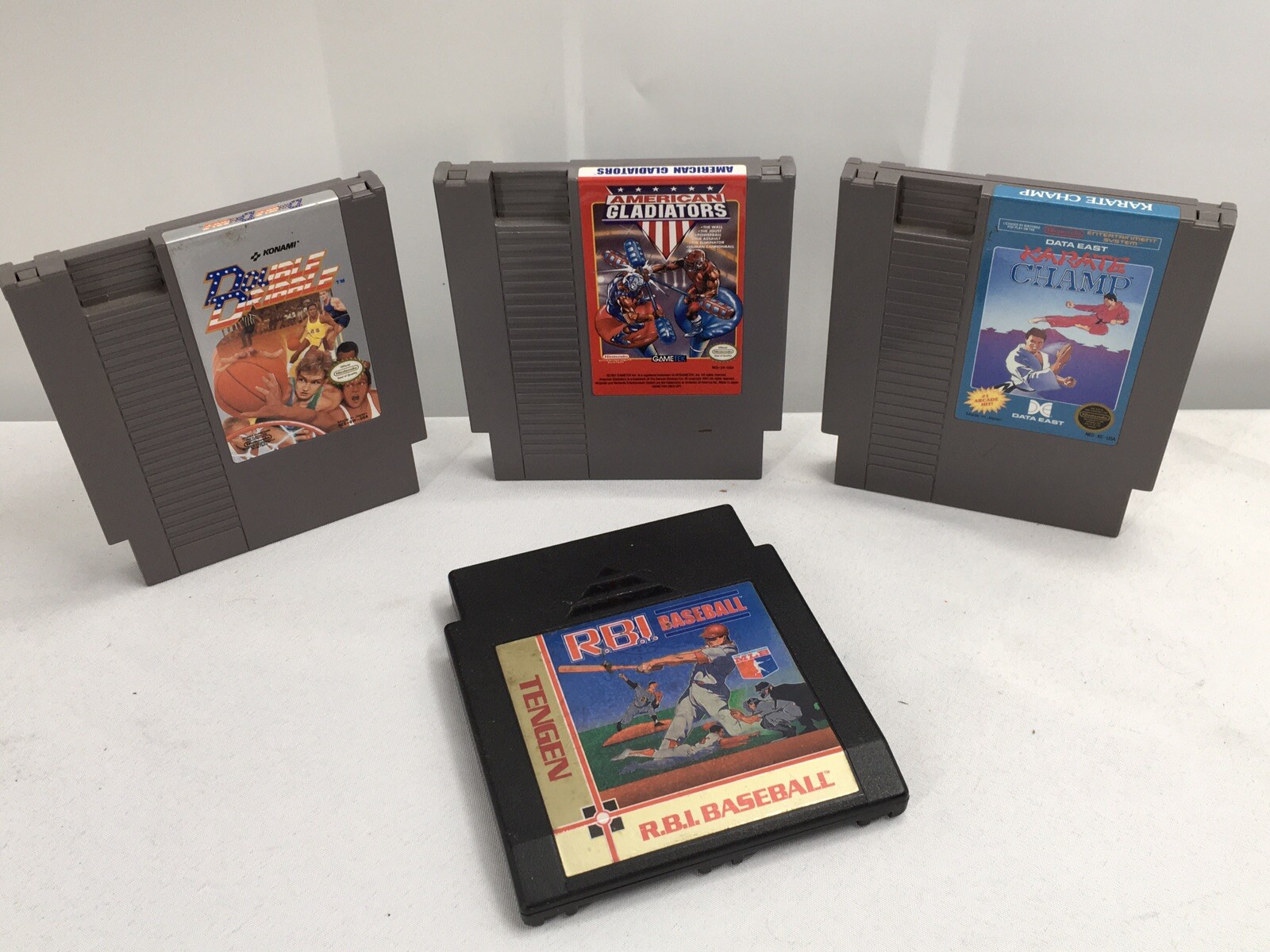Vintage 1980s Ninteno NES American Gladiators / Double Dribble 4 Sports Game Lot