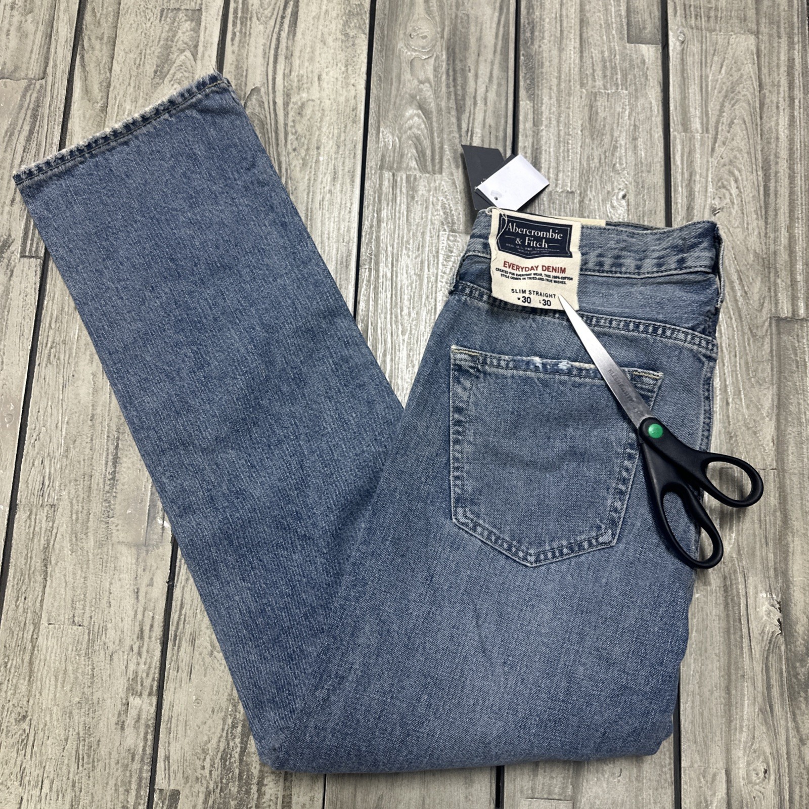 NWT Abercombie & Fitch Slim Striaght Jeans Size 30x30 Washed Blue Distressed