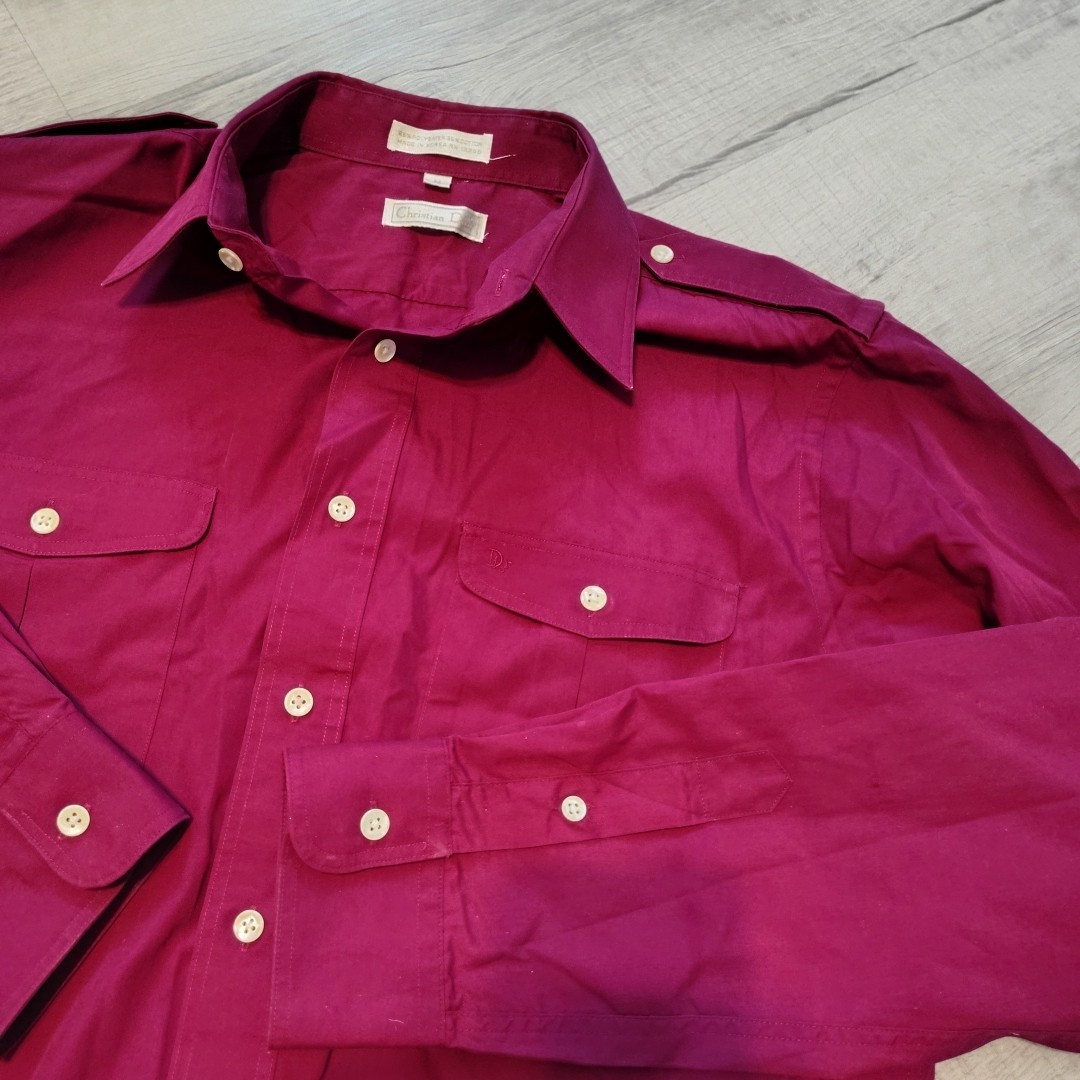 Christain Dior Mens Button Shirt VTG Red Epaulet Miltary Safari Medium