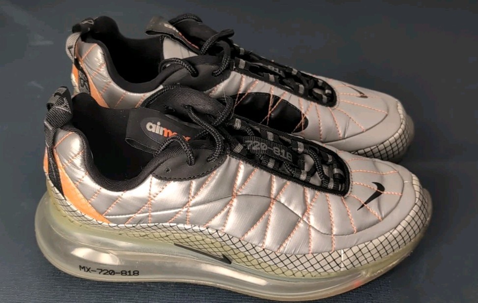 Nike Air MX 720-818 Metallic Silver Black Orange BV5841-001 Men's Sneakers